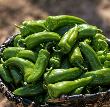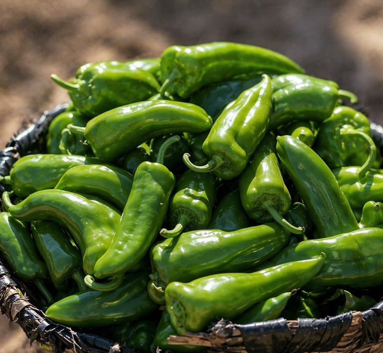 Chile Anaheim de sabor suave y ligeramente dulce, ideal para asar, textura tierna